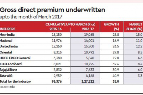 Non-life premium grows 32% at Rs 1.27 lakh crore in FY17